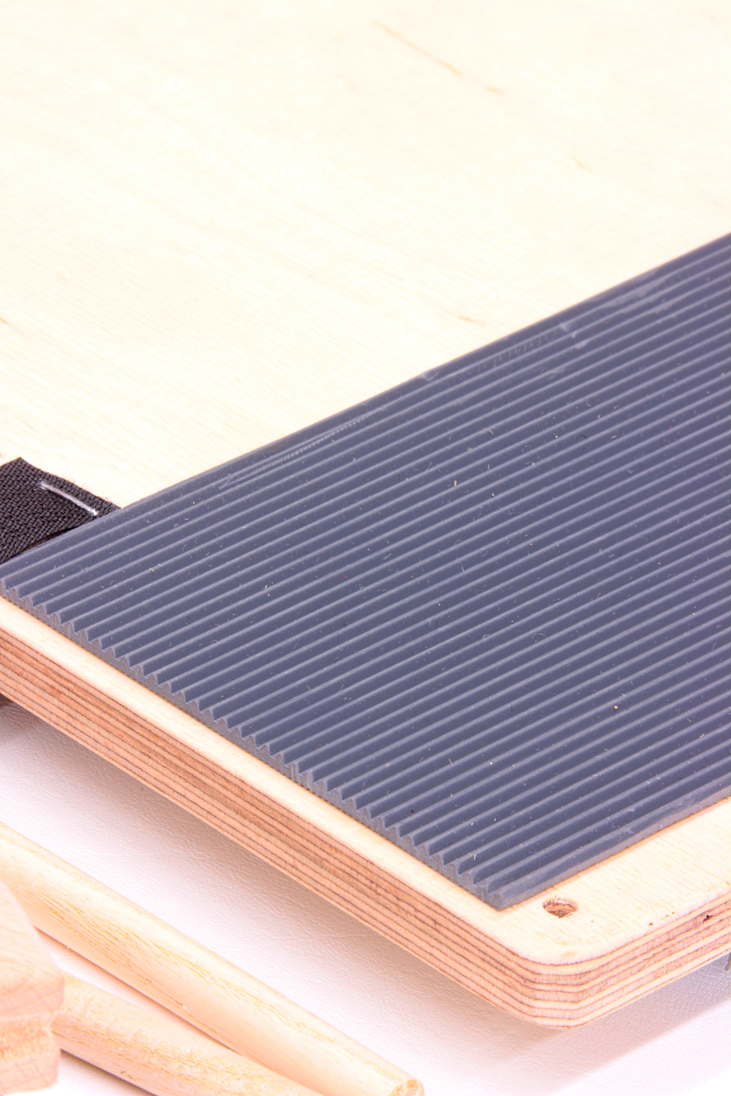 Durch eine rutschfeste Gummimatte auf der Rückseite des Kardierbretts kann das Kardierbrett beim Arbeiten ohne Probleme auch direkt auf den Tisch gelegt werden ohne zu verrutschen.