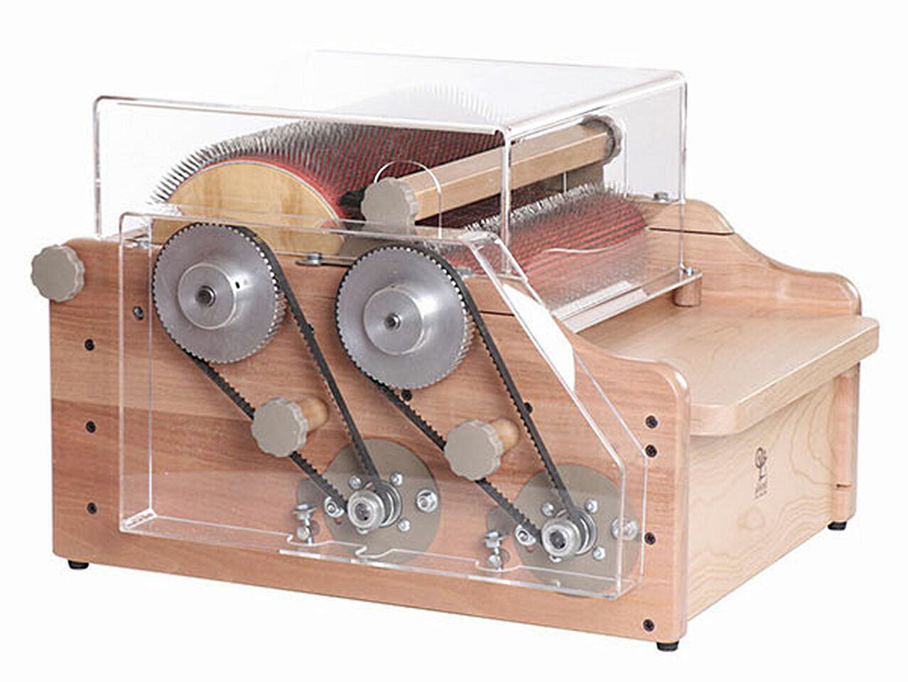 Faseraufbereitung leicht gemacht. Ashford hat einen E-Carder entwickelt, der auf dem beliebten 30 cm breiten Drum Carder basiert. Die Kardiermaschine verfügt über zwei außergewöhnlich leistungsstarke Motoren, mit denen sich Vlies und Faserband einfach und schnell kardieren lassen.
