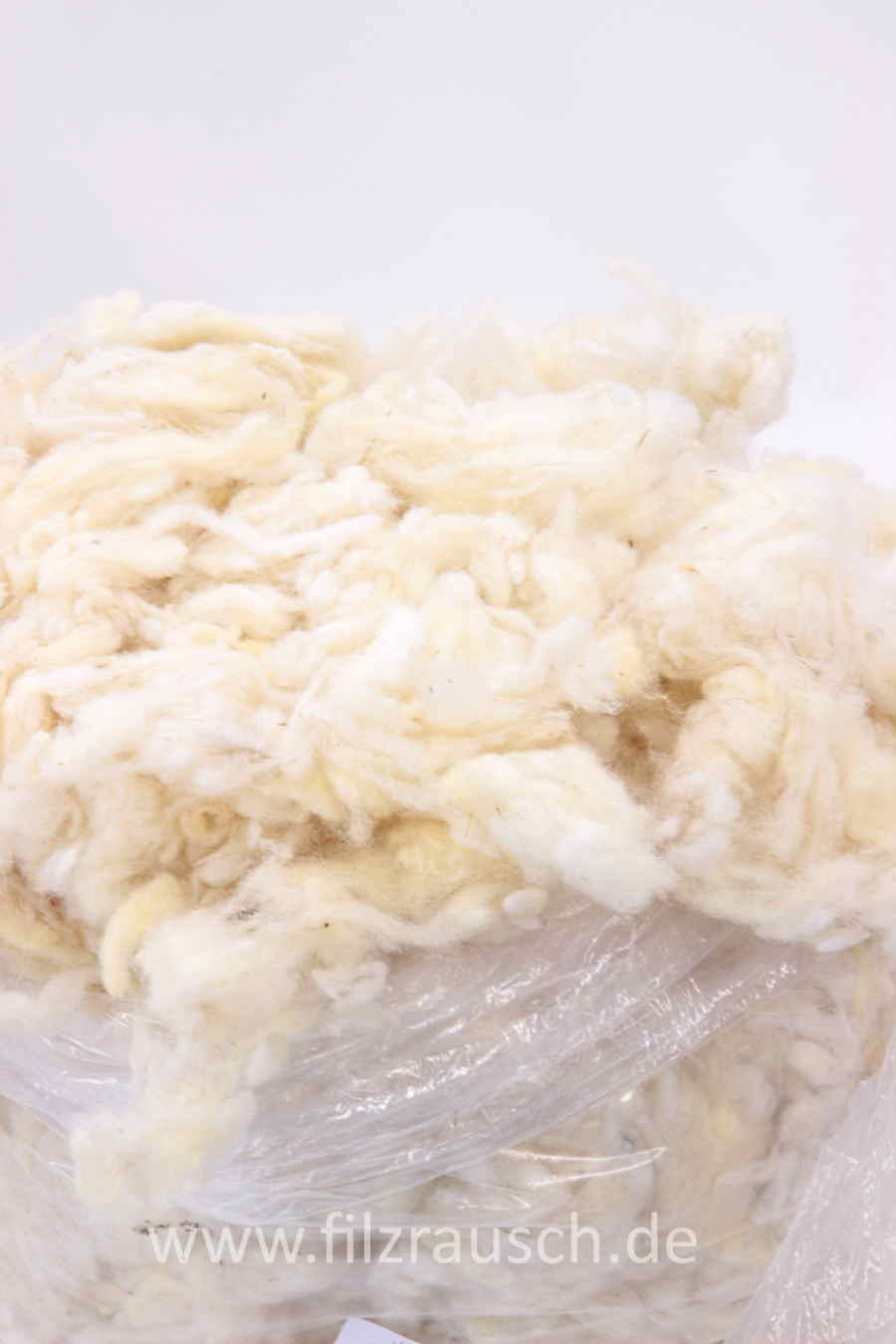 Produktinformationen "Bio - Merinowolle, ungekämmt (kbT) - weißeFlocke - gelblich fein-Copy"