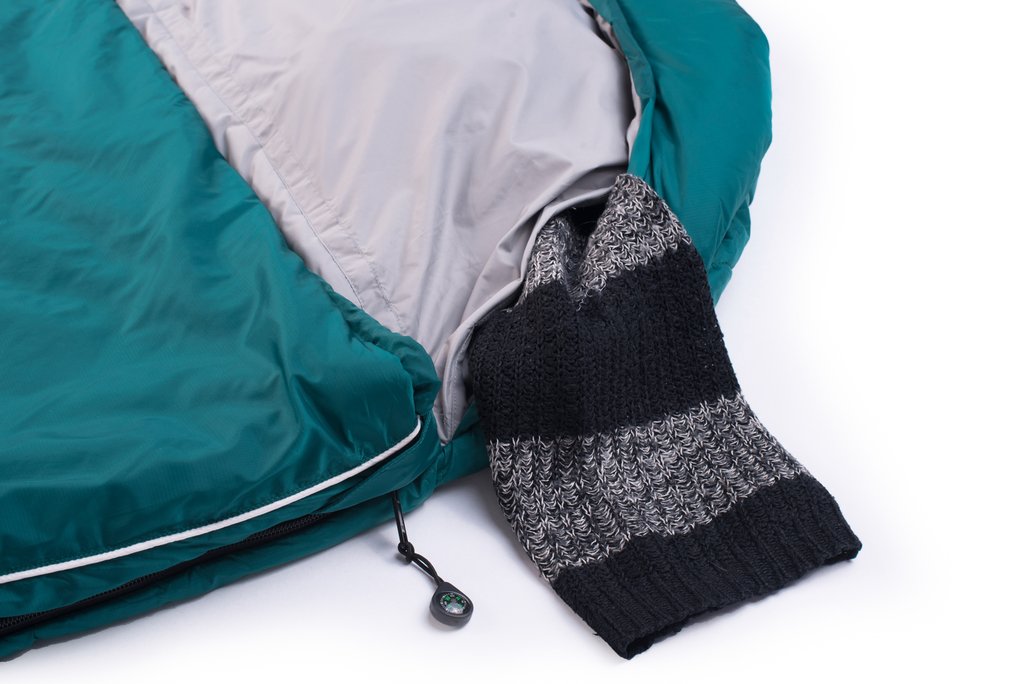 - Kopfkissenfach: Schiebt man in das Kisseneinschubfach z.B. eine Fleecejacke, bietet der Schlafsack auch ein unverrutschbares Kopfkissen.