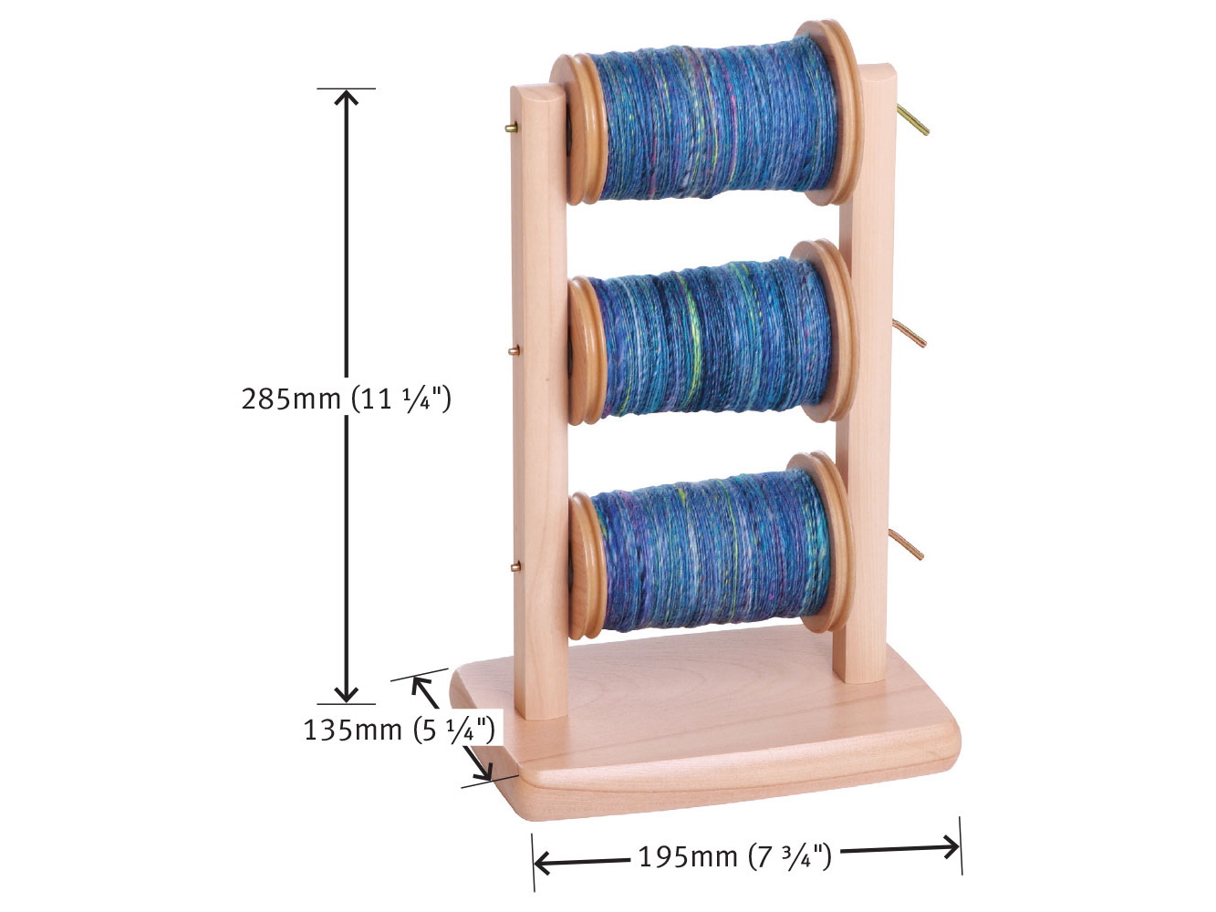 Kleines Spulengestell für 3 Ashford Standard-Spulen oder 2 Ashford Sliding Hook Flyer Spulen (bei drei Spulen ist es sehr knapp - siehe Achsabstand ) bzw. 2 Ashford Jumbospulen