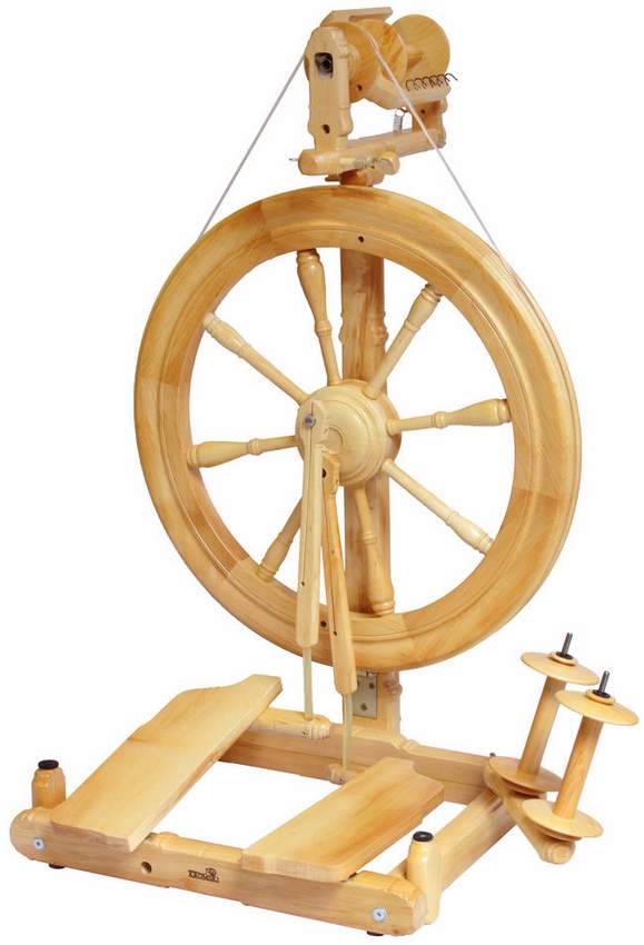 Ein klappbares Spinnrad, geeignet zur Platz sparenden Aufbewahrung. Besonders gut für diejenigen, die Ihr Spinnrad auch gerne mit auf die Reise nehmen möchten. Geliefert wird es mit einer verstärkten Spezialtasche zum sicheren Transport. Es zeichnet sich aus, durch den einfädigen Antrieb mit Doppelpedal und ein großes Schwungrad mit Kugellager.